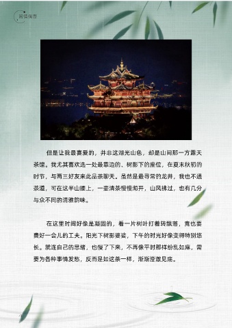 但是讓我最喜愛(ài)的,并非這湖光山色,卻是山間那一方露天